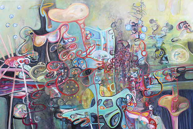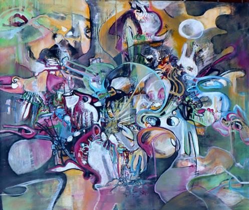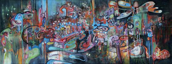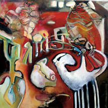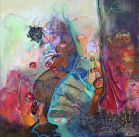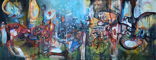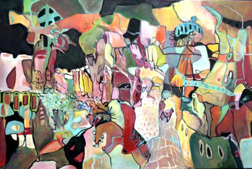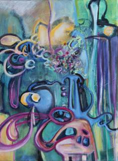 Alice, 150 x 100 cm, 2023.....Hanging Gardens, je 50 x 130 cm,, 2018.....Circus, 28 x 35 cm, 2016..Karastro, 30 x 40 cm, 2018.....